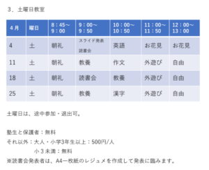 2026年4月の土曜日教室の予定